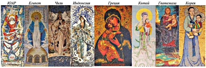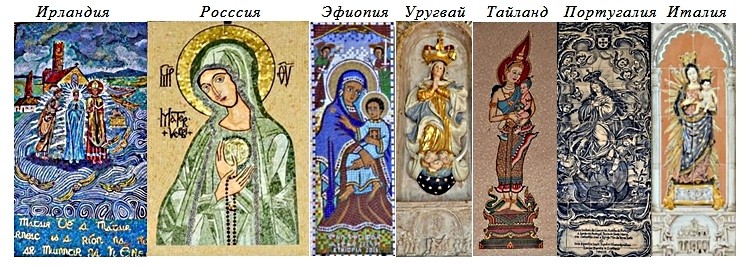 Хорватия Ватикан Колумбия Бразилия Украина Филиппины Испания C развитием человечества и возникновением первых письменных свидетельств, достоверно известно, что самым древним вероисповеданием на земле было поклонение Богини Матери. Еще в далекие древние времена устраивались благодарственные праздники в честь женского божества, почитавшегося как родоначальница и покровительница человеческого рода. Несмотря на многообразие Богинь у разных народов мира, они все же имели некоторые общие черты. Женское божество было одновременно и Девой, и Матерью. Эти аспекты были соответственно проявлены и в Богородице Деве Марии нашего христианского времени. Древние народы, несомненно, осознавали: Богиня Мать, которая рождает все живое и дает святое дуновение – понятие, признанное уже в христианстве, как домостроительство Святого Духа. Во всех мировых культурах Богиня Матерь рождает свыше богомладенца. Помогает, является и исцеляет. Так же, Богини Матери часто изображались держащими в руках чашу. Это относится, например, к шумерской Иштар, фригийской Кибеле и Гуань Минь в Китае. Чаша имела очень важное духовное значение – в ней пресуществлялся нектар, амброзия и напиток вечной жизни амрита. И другие важные особенности универсума – Великая Богиня Мать считалась бессмертной, неизменной и всемогущей, где период Её прославления совпадал с процветанием и благополучием древних цивилизаций. Это было время Золотого века, время мира и гармонии с природой – священными животными, водными обитателями и растительным миром. Прославляя Великую Богиню Мать, воздвигая в честь Её великолепнейшие архитектурные сооружения, воспевая Ей священные гимны, молитвы и находясь в непрерывном диалоге, они овладевали многими тайными знаниями, где разумно их использовали, приобщаясь к высочайшим небесным сферам.
